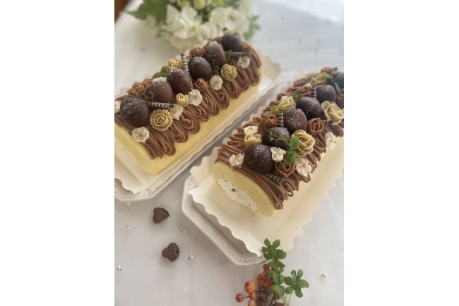 ロールの中のクリームにも、栗の渋皮甘露煮を細かく砕いて入れました^ ^